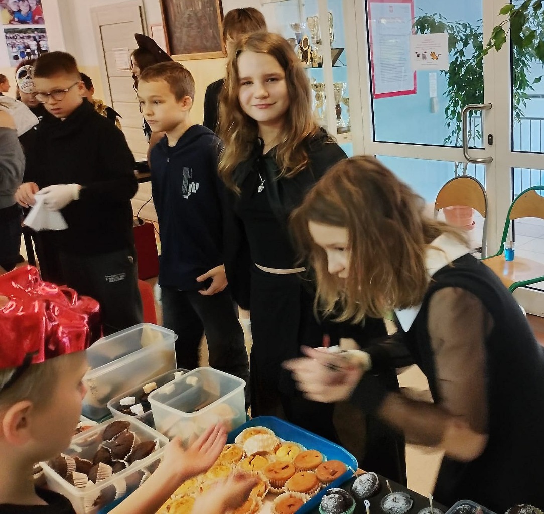 Było dużo smakołyków, które - ku radości organizatorów - szybko znikały. A że był to szczególny dzień, więc stoisko odwiedzały różne postacie. Było wesoło i trochę strasznie…