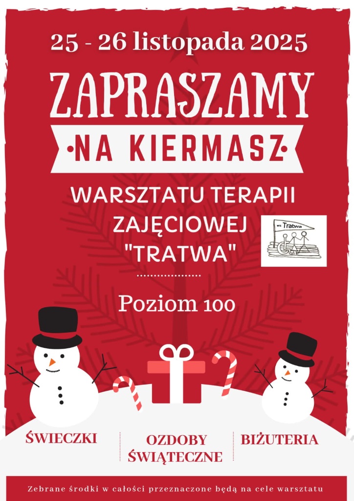 Pragniemy poinformować, że w dniach 25- 26 listopada 2025 roku w naszej szkole odbędzie się Kiermasz świąteczny Warsztatu Terapii Zajęciowej "Tratwa".