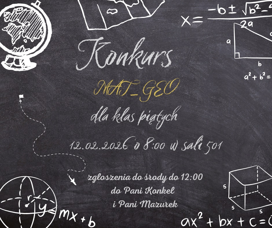 Konkurs MATGEO dla klas piątych odbędzie się w czwartek, 12.02.2026 r., o godz. 8:00 w sali 501.