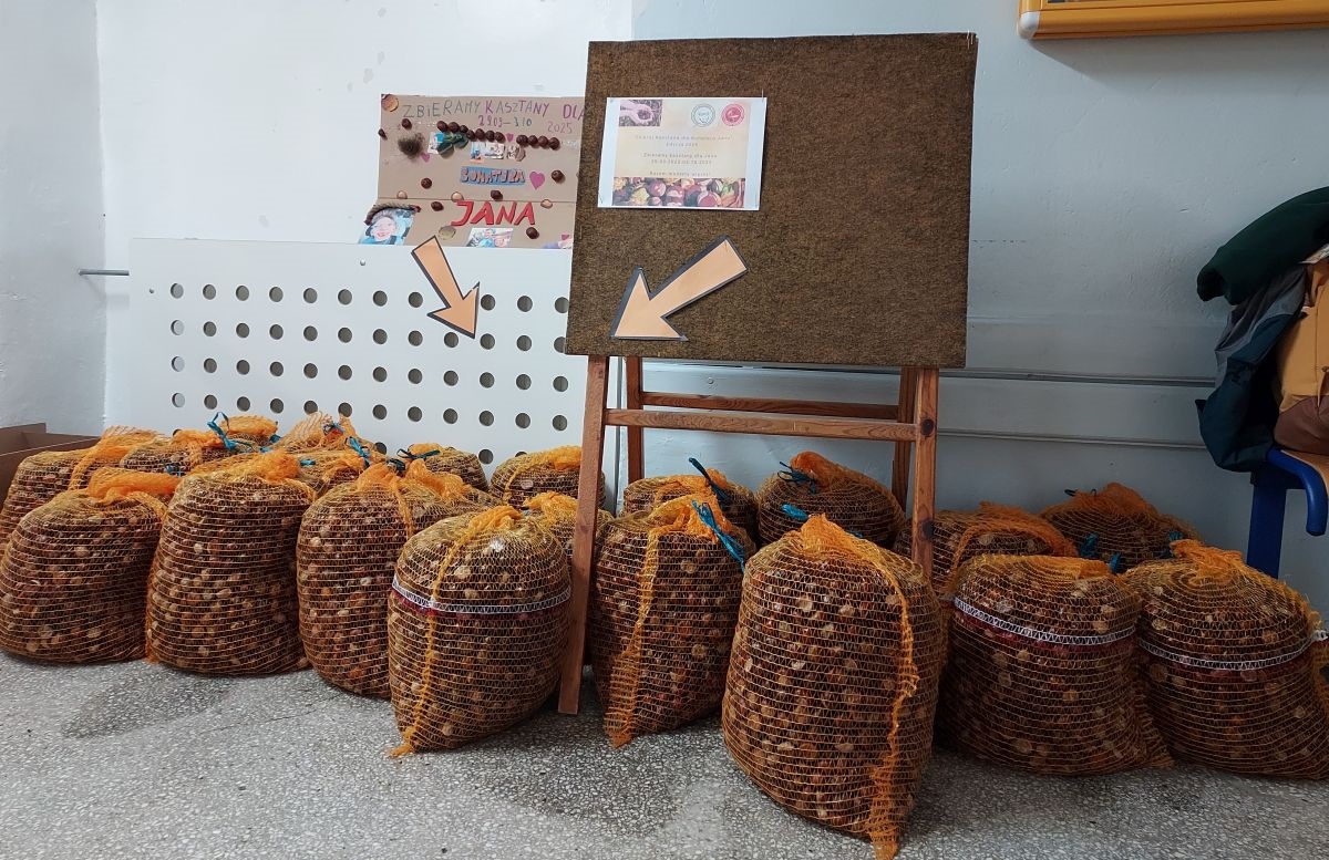 Składamy ogromne podziękowania dla wszystkich Uczniów, Rodziców i Nauczycieli, którzy wsparli organizowaną w poprzednim tygodniu akcję "Zbieraj Kasztana dla Bohatera Jana Edycja 2025". Dzięki Państwa zaangażowaniu zebraliśmy ponad 350 kg kasztanów, to naprawdę niesamowity wynik. We wtorek kasztany zostały przewiezione do punktu zbiórki.